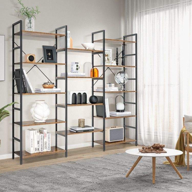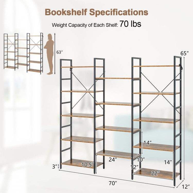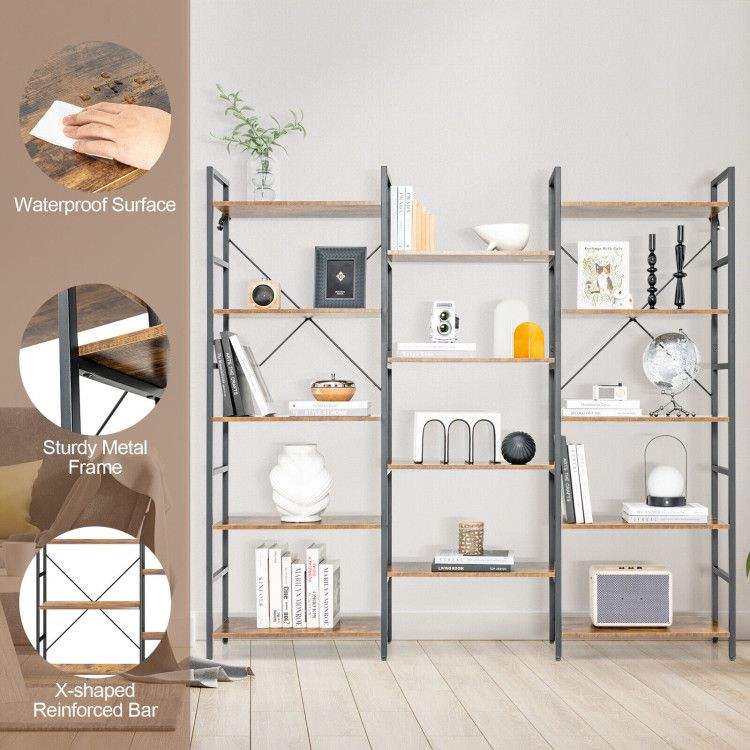 Libreria a tre ante grande e alta con struttura in metallo, scaffale espositivo per collezione di libri