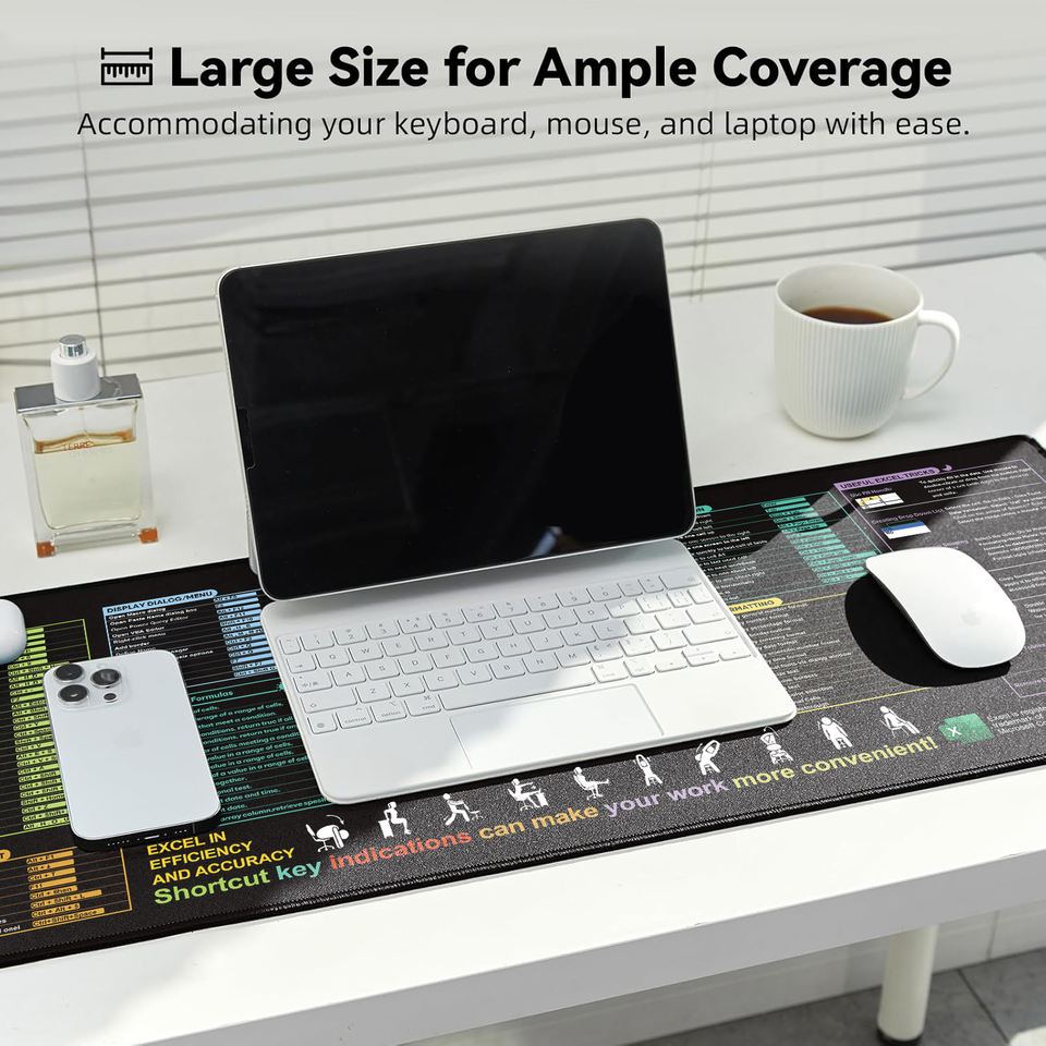 Grande manopola impermeabile Excel Cheat Sheet Gaming Mousepad per tastiera da ufficio in gomma con fondo rifornito di scorciatoie per Computer