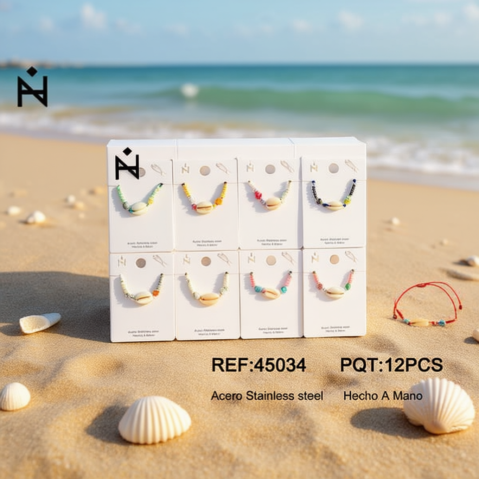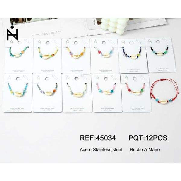 Bracciale con perline di conchiglia bianca grande, Pulsera Acero, acciaio inossidabile, fatto a mano, 12 pezzi