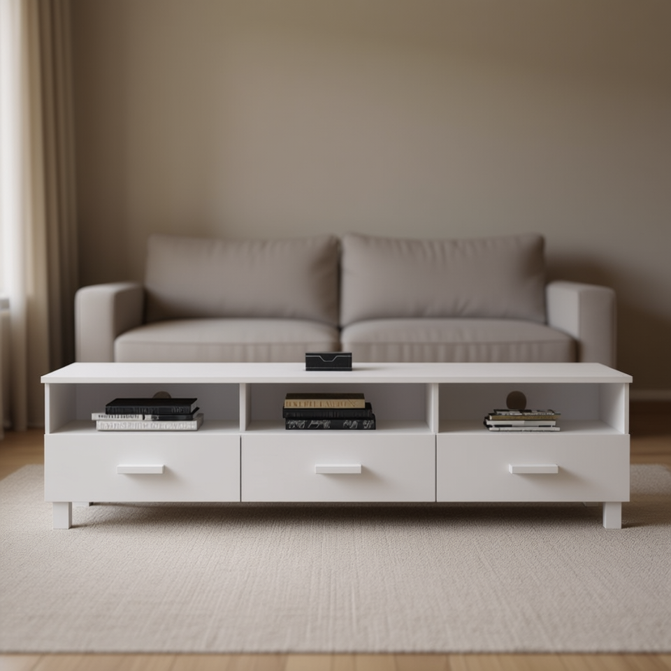 White Modern Living Room Cabinet 3 Drawers 3 Shelves Storage Furniture for Home