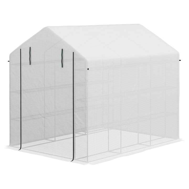 Grande serra bianca Walk-In con scaffalatura copertura In PE e porta avvolgirevole per uso esterno e giardino