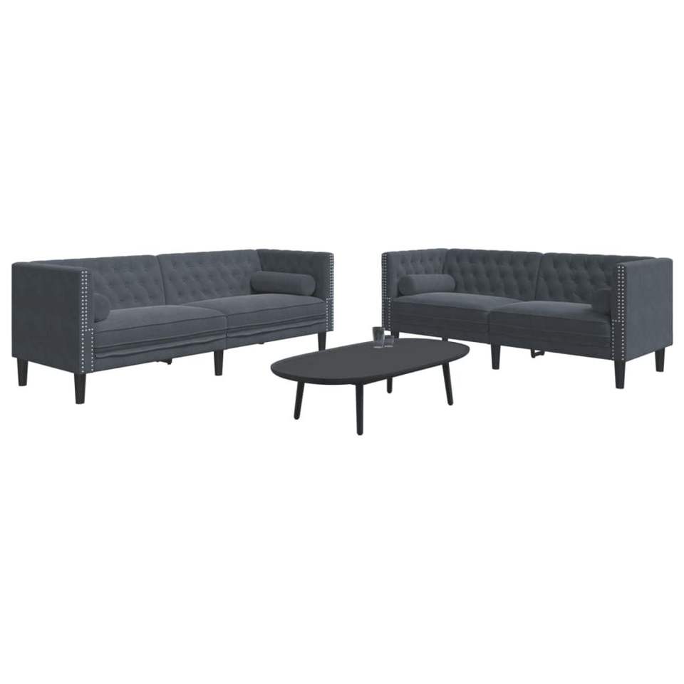 Large Wood Chesterfield Sofa Set in Dark Gray Velvet Foam for Living Room