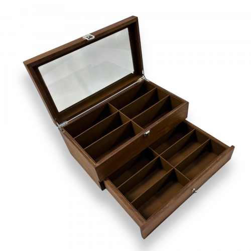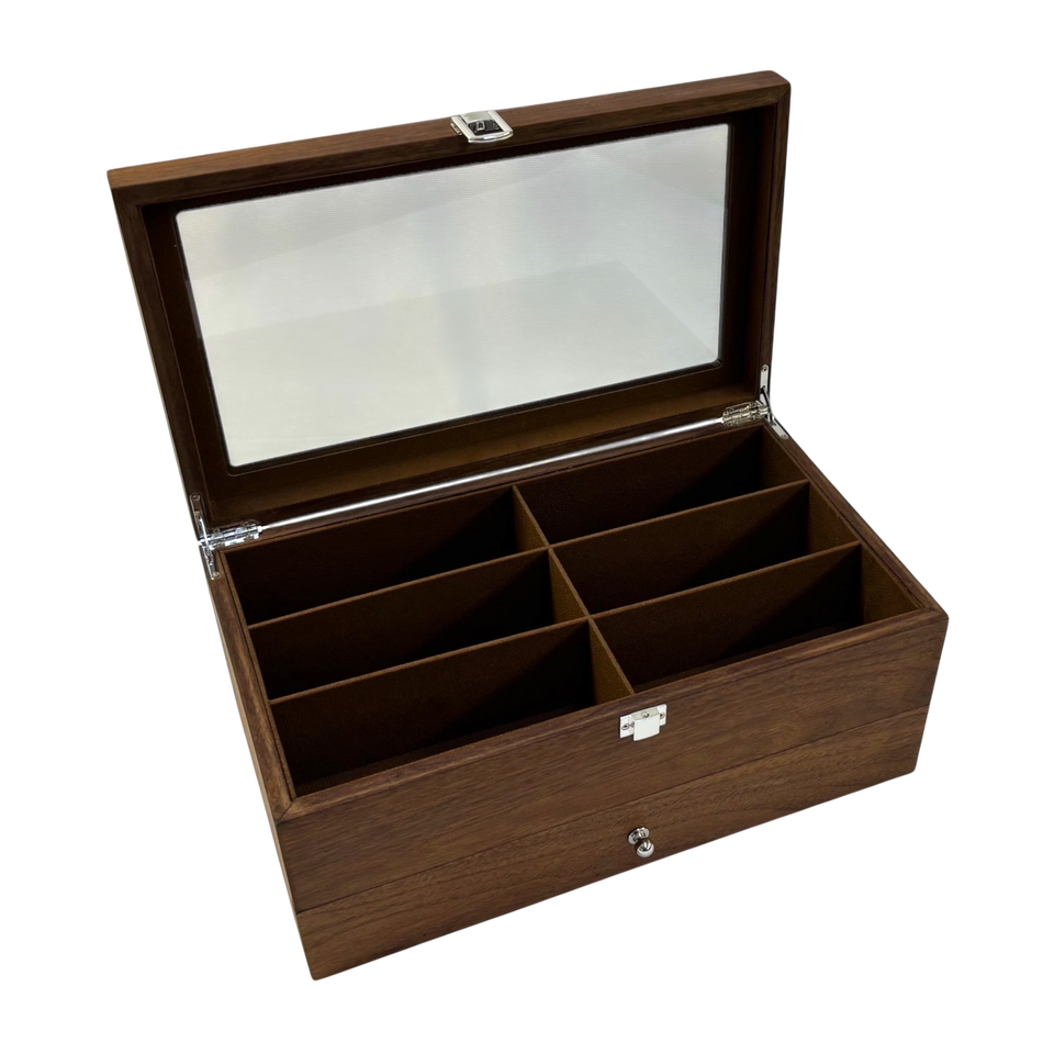 Large Wood Glasses Box 9052 with Viewing Window Lid for Eyewear Storage and Display