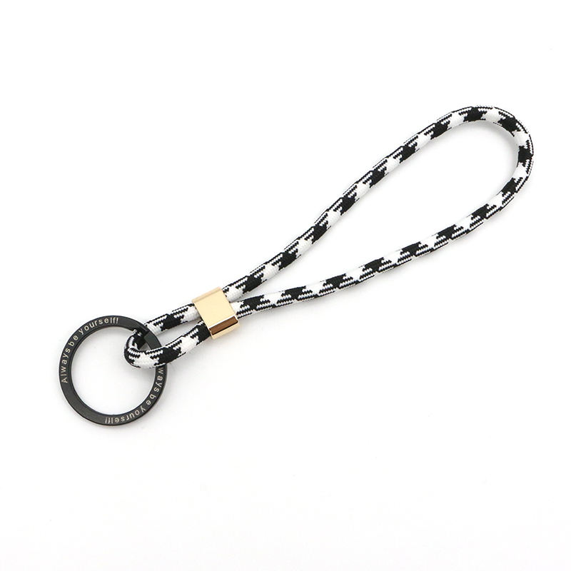 Laser Logo Silk Print Engrave Logo Metal Mit Flat Ring Custom Color for Round Polyester Rope Short Lanyard Keychain