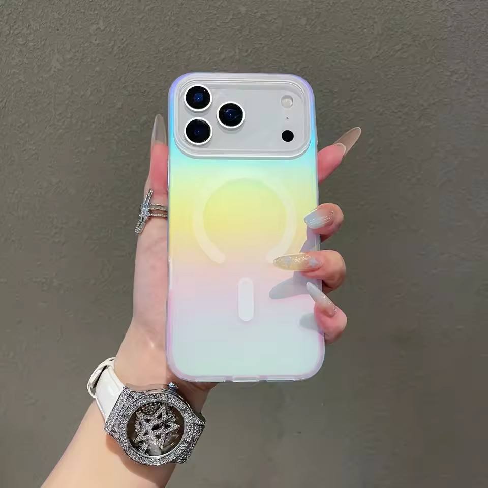 Custodia magnetica opaca Laser per iPhone 17 Air 16 15 14 13 12 11 Pro Max Plus 17Pro 16E gradiente di ricarica Wireless Rainbow Funda