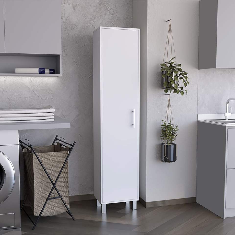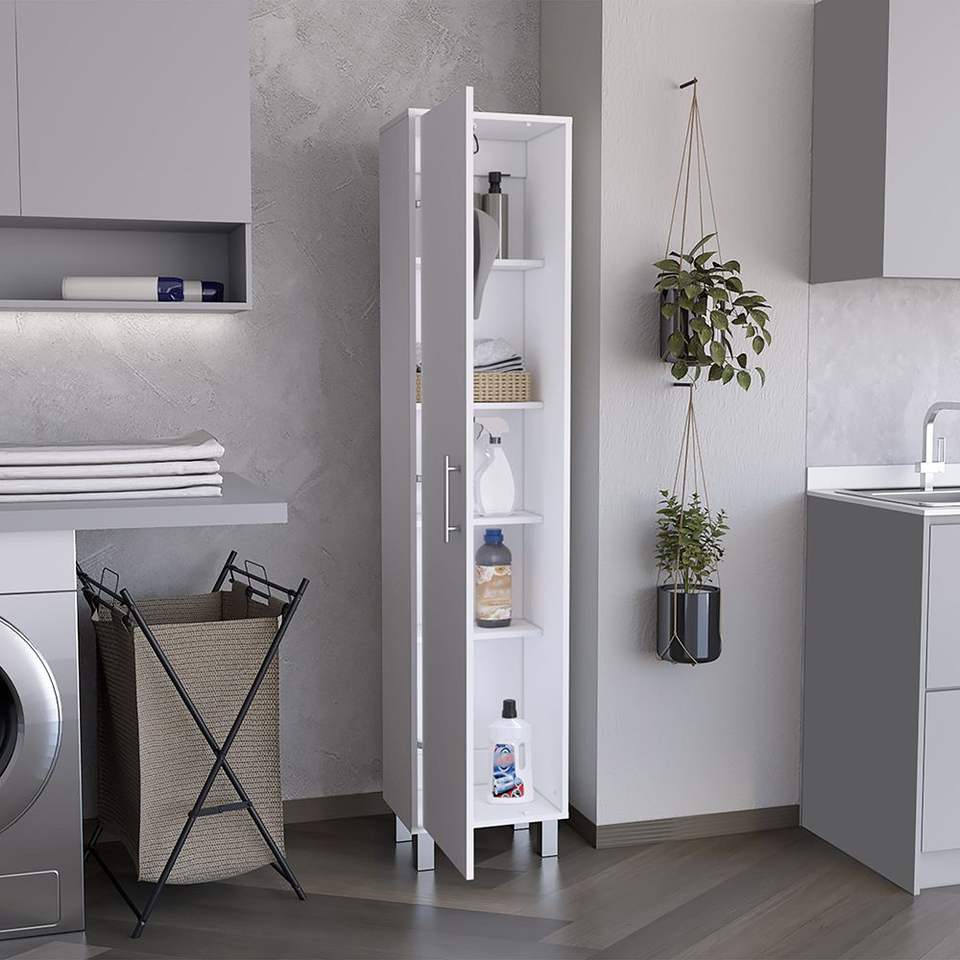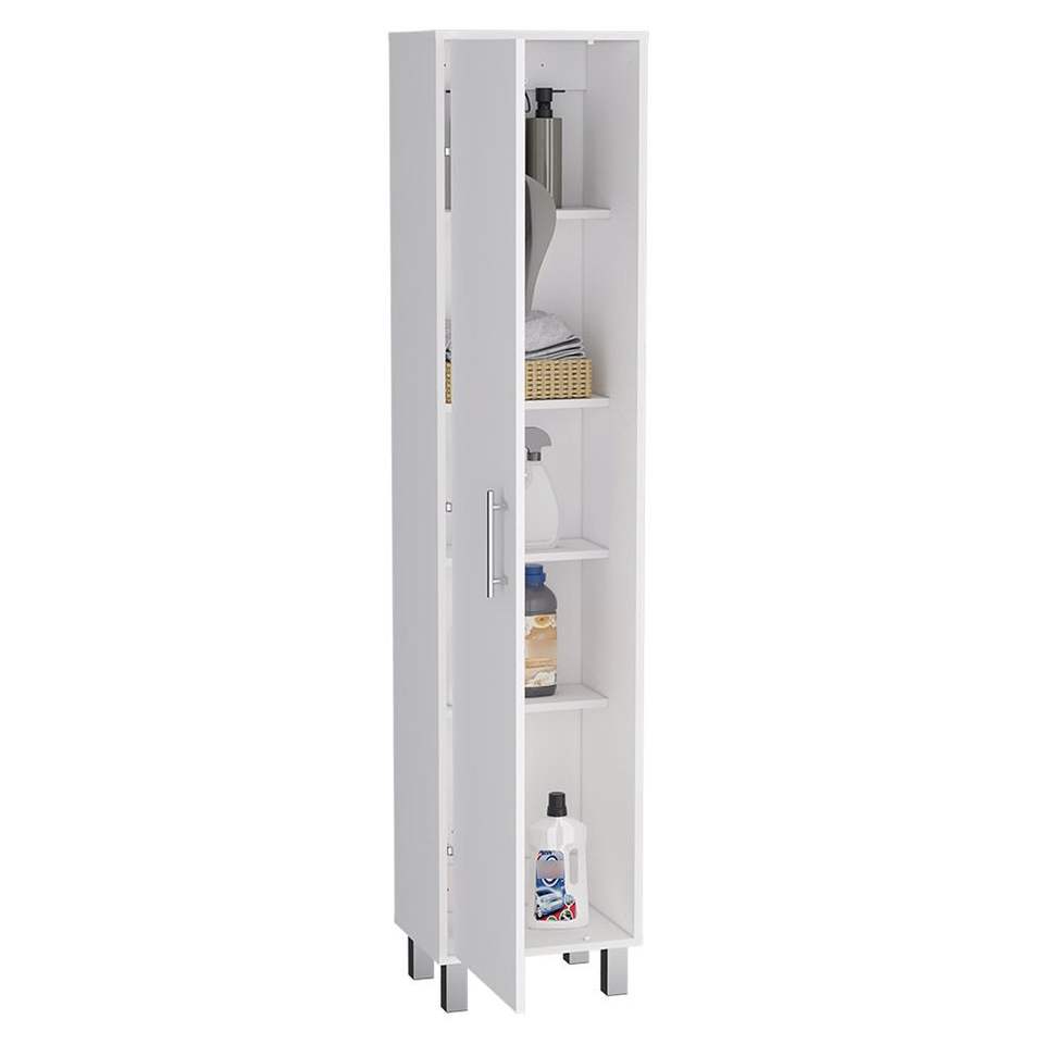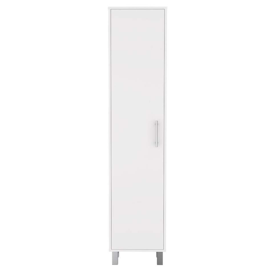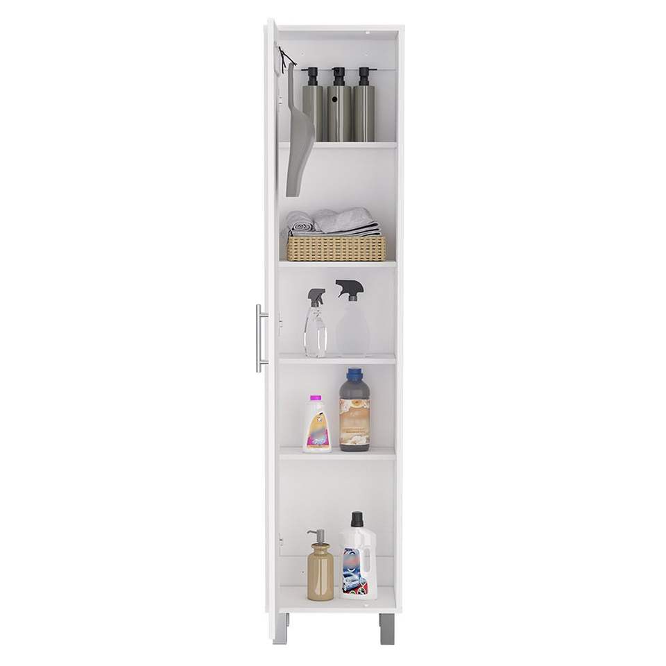 Armadio di Stoccaggio Bianco Laska da 70 Pollici con Ganci per Scope e Quattro Ripiani per Magazzino