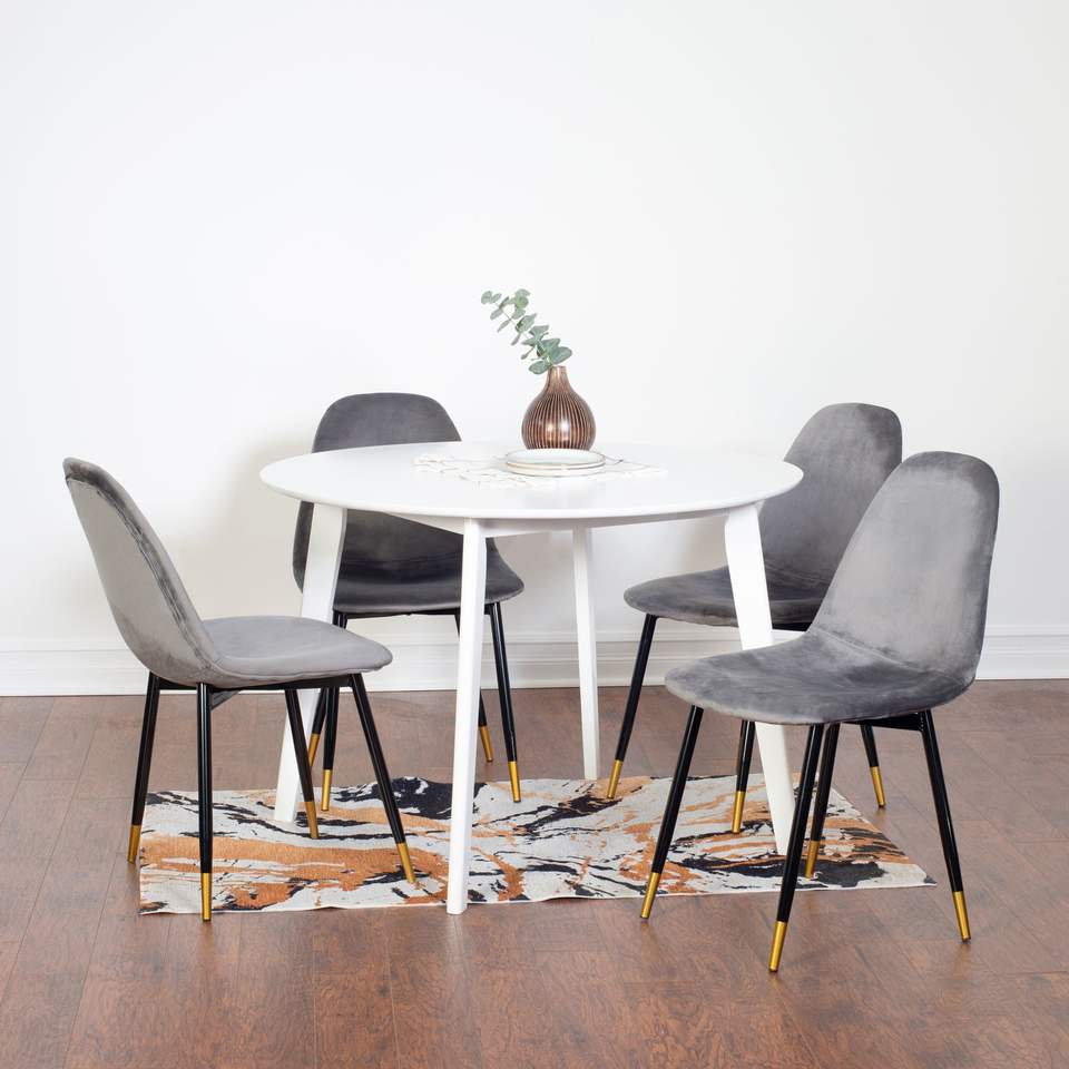 Set da Pranzo Contemporaneo Lassan 5 Pezzi, Tavolo Rotondo Bianco con 4 Sedie per Sala da Pranzo
