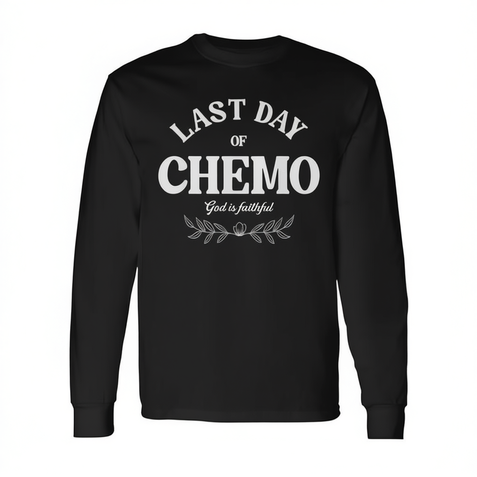 Ultimo giorno di chemioterapia, Dio è fedele, maglietta a maniche lunghe per la sensibilizzazione sul cancro