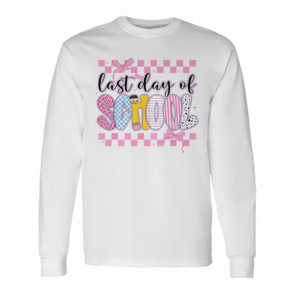 Maglietta a maniche lunghe per l'ultimo giorno di scuola, design con fiocco coquette per outfit estivo per bambini