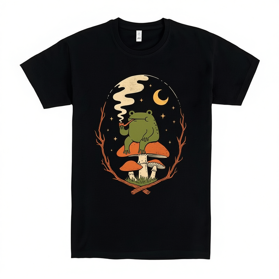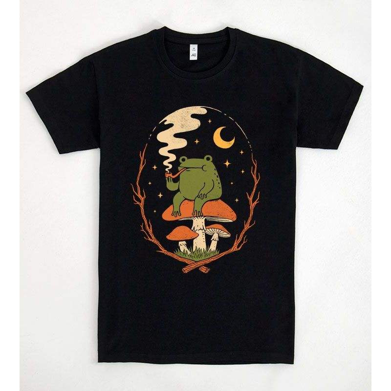Late Night Vibes Frog Mushroom Moon T-shirt nera unisex per adulti taglia M