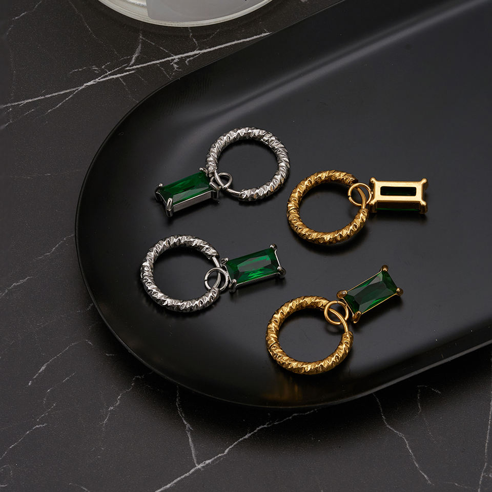 Ultimo 18K oro placcato gioielli in acciaio inox anello a spirale rettangolare verde zircone orecchini impermeabili E241547