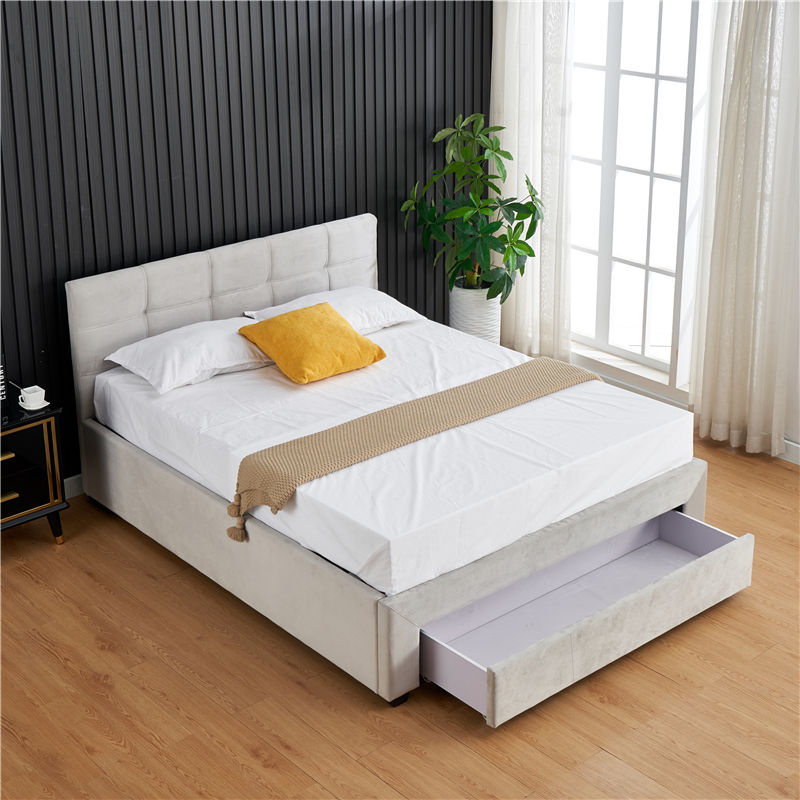 Ultima bellezza stile moderno su misura di colore facile da montare singolo doppio formato grigio luce velluto cassetto letto di stoccaggio