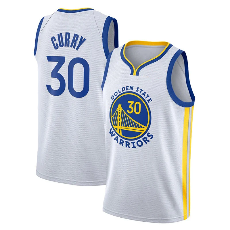 Completo da Basket Personalizzato Ultimo Design Curry da Uomo Economico ad Asciugatura Rapida Bianco/Blu Divisa da Basket