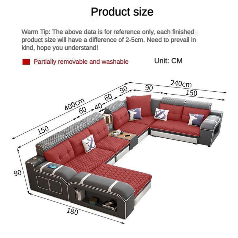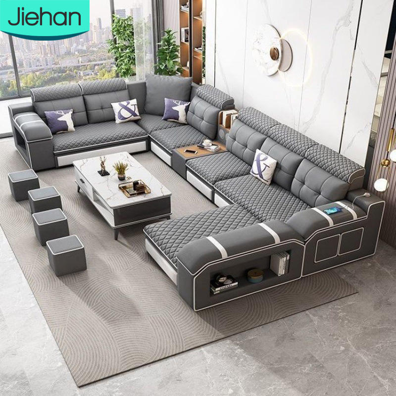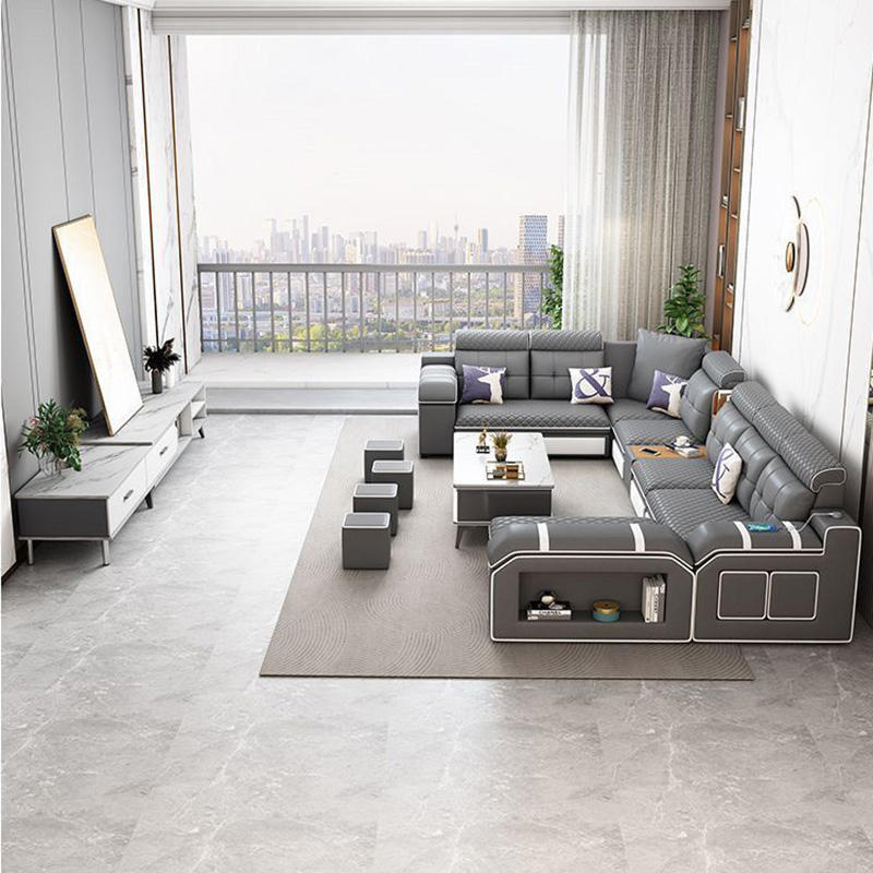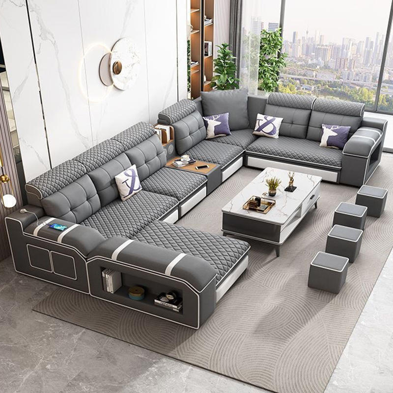 Set Divani di Ultimo Design con Funzione Contenitore e Ricarica USB a Prezzo all'Ingrosso, Arredamento Personalizzato in Tessuto Grigio per Soggiorno