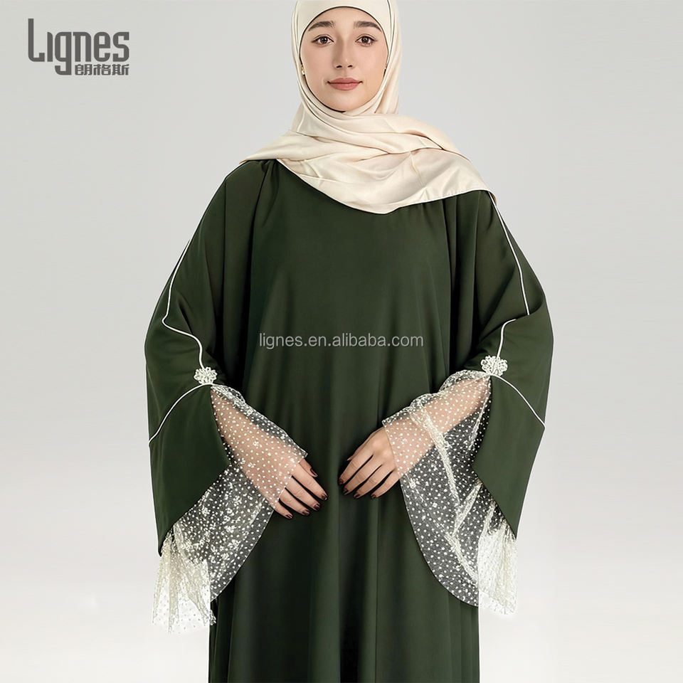 Ultima Novità EID Abaya Musulmana Abbigliamento Islamico Donna Elegante Abaya Nera Chiusa in Pizzo Nida Dubai Abiti Modesti da Donna