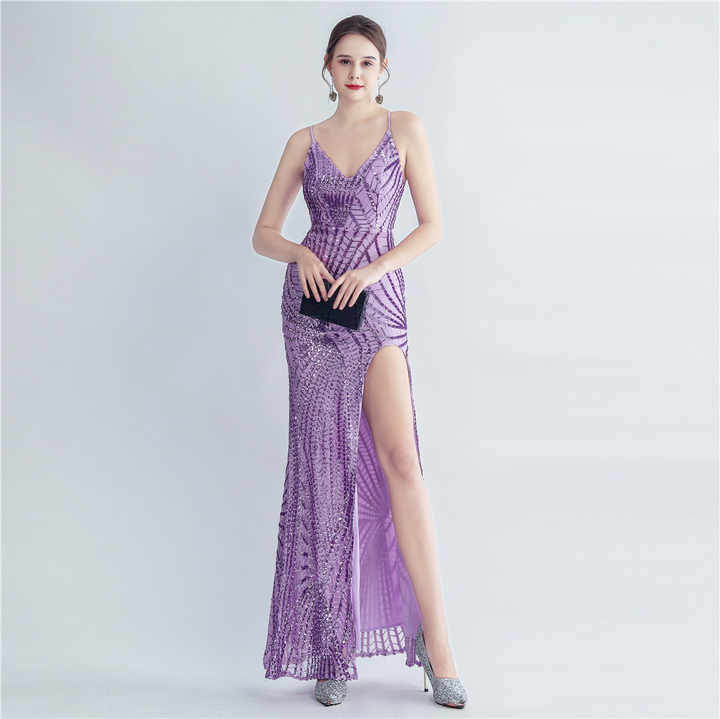 Ultima moda squisita con paillettes legate in vita con spacco laterale alto abito da sera Sexy