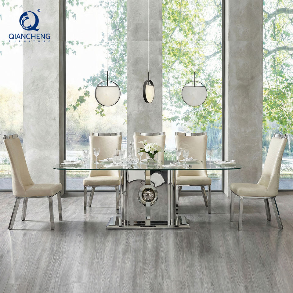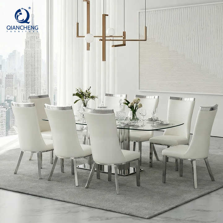 Latest Fashion Design 8 Seater Dining Table and Chair Set High-End Villa Large Marble Glass Dining Table for Dubai Arabia