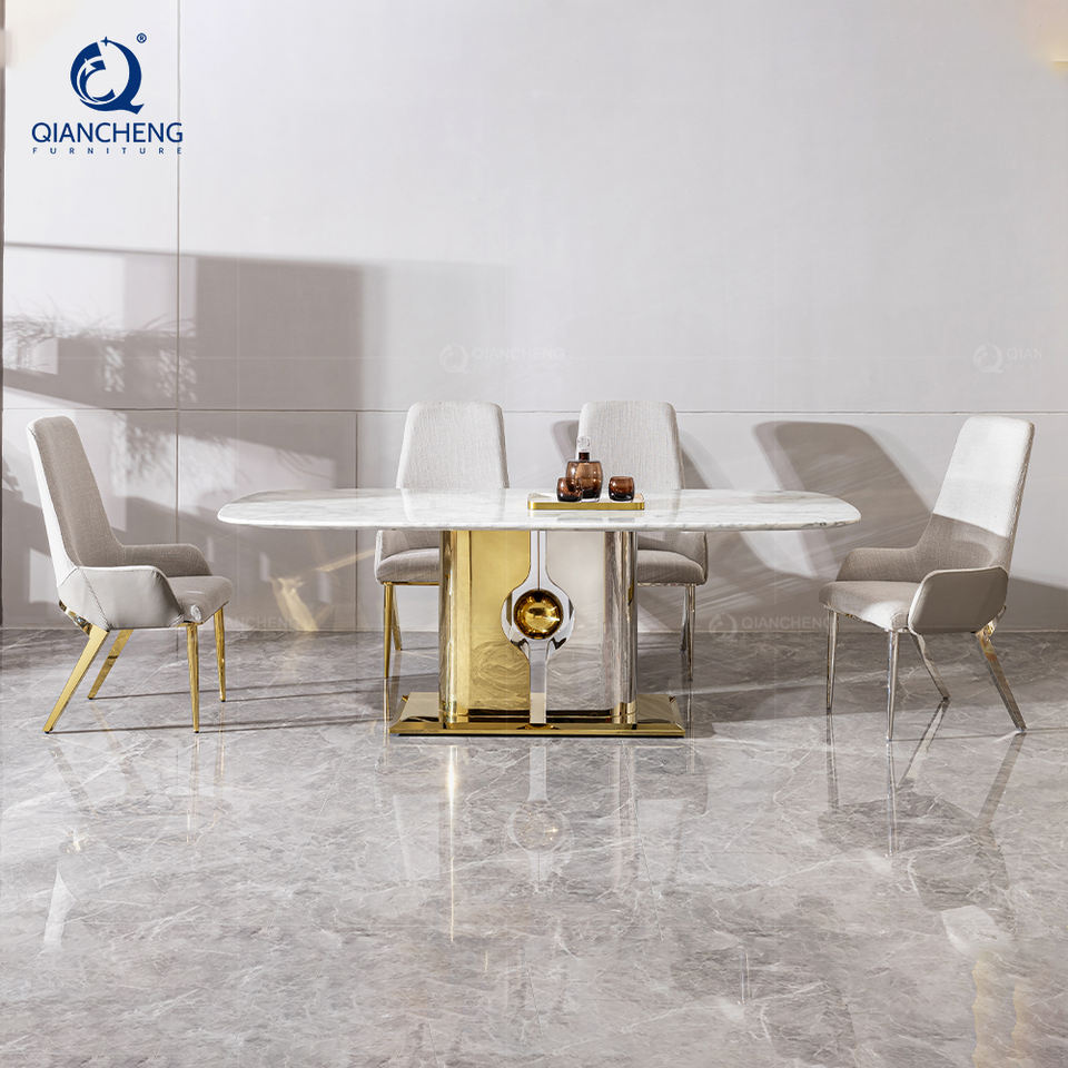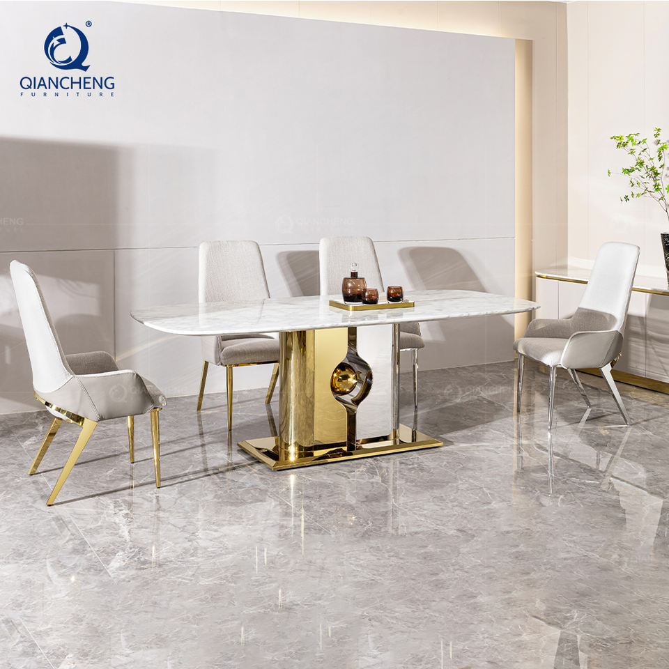 Mirror gold stainless steel dining table