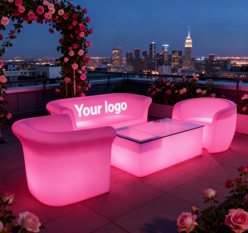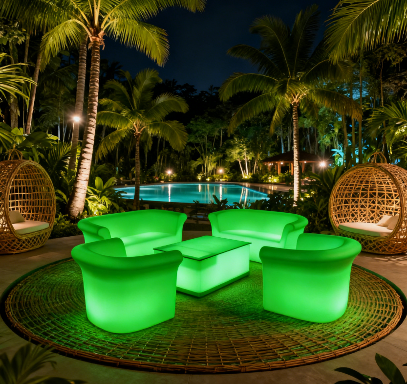 Ultimo Modello di Divano Illuminato a LED per Soggiorno, Divano Lounge in Plastica Impermeabile Ricaricabile con LED per Esterni e Patio