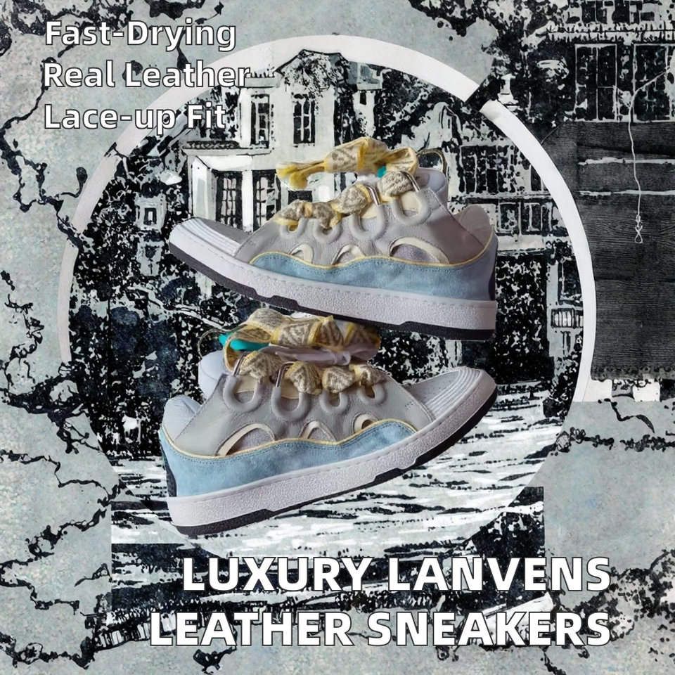 Ultima moda di lusso di alta qualità Lanvens Sneakers per gli uomini delle donne Design classico in vera pelle con rivestimento in maglia plantare in PVC