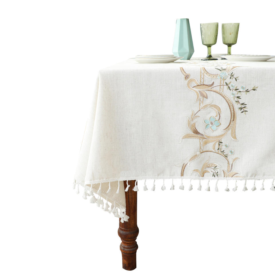 Ultima Novità: Tovaglia Rettangolare Moderna Ricamata in Poliestere e Lino, Antimacchia, per Uso Domestico su Tavolino da Caffè e Tavolo da Pranzo
