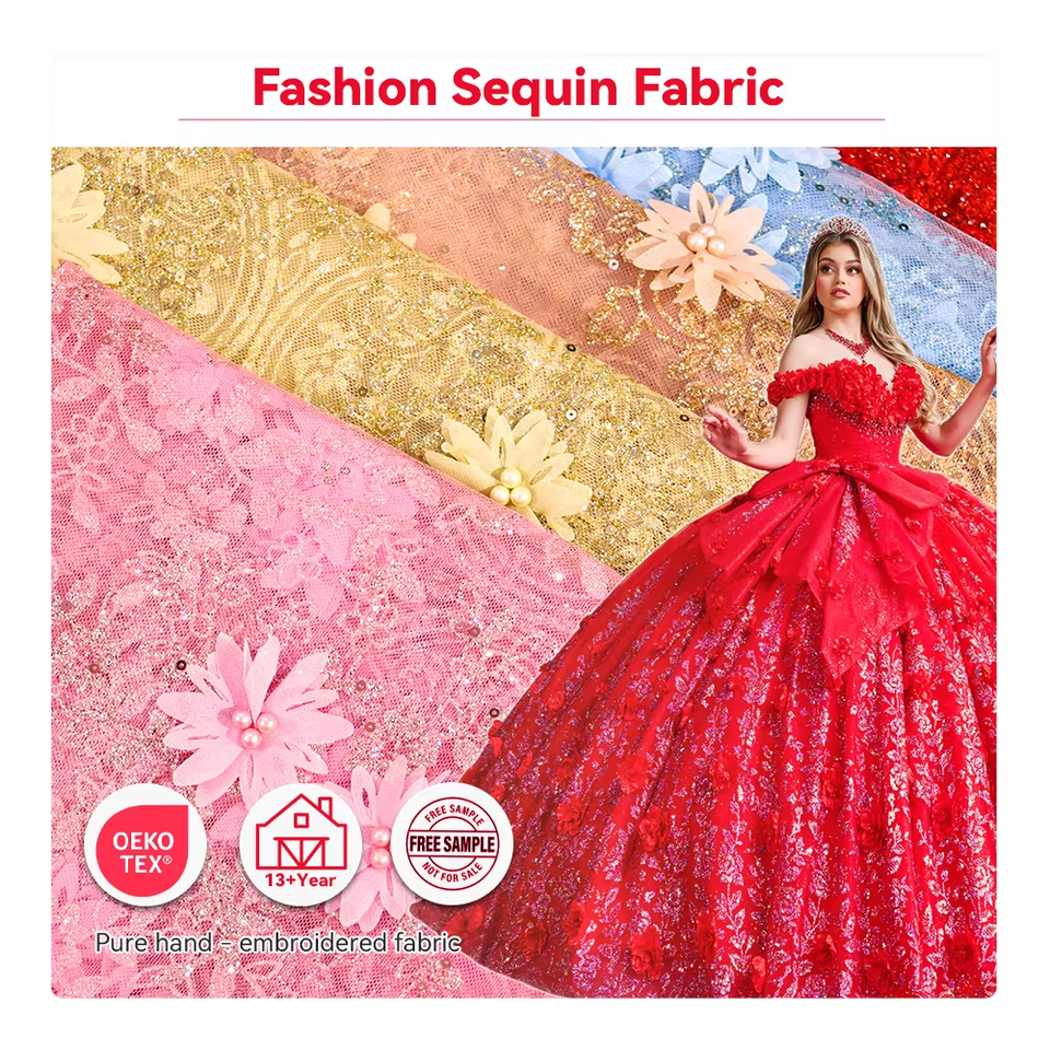 Ultimo nuovo Design 3d fiore ricamo tessuto 100% poliestere colorato perla di perline tessuto di maglia per le donne di nozze vestito