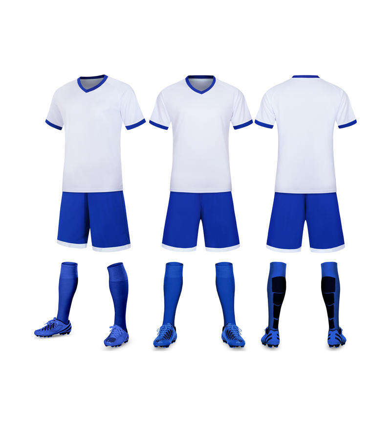 Ultimo nuovo Design gratuito Logo personalizzato giallo blu uniforme da calcio Set maglia da calcio ad asciugatura rapida Kit da calcio