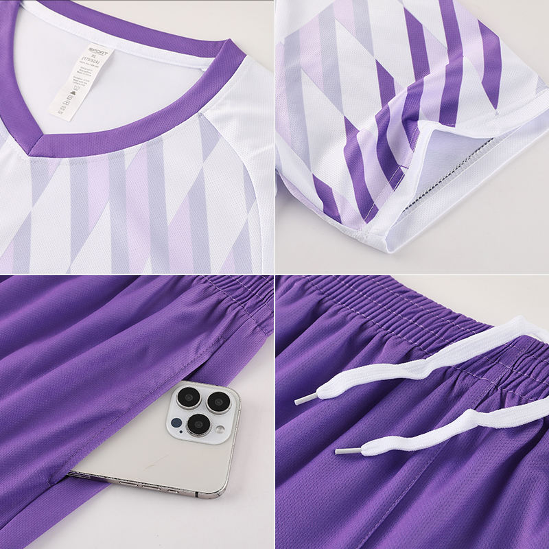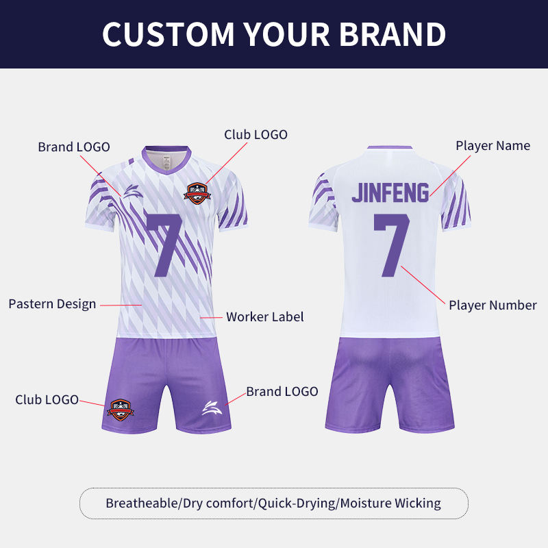 Ultima Maglia da Calcio ad Asciugatura Rapida con Stampa Sublimatica, Tuta da Allenamento per Uomo Bianca e Viola