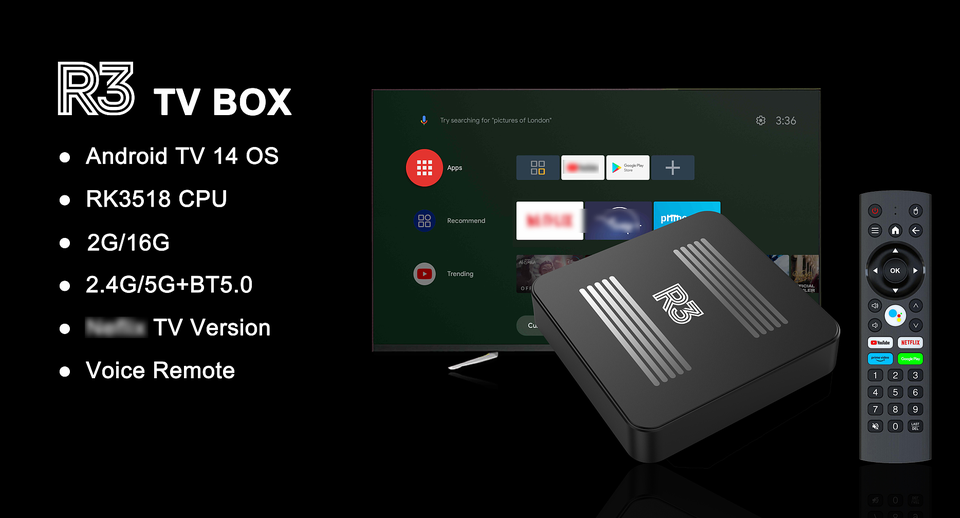 Ultimo modello R3 Tv Box con chip RK3518, 4K, 2GB RAM, 16GB ROM, Android 14.0, controllo vocale intelligente, internet, smart tv box 4K.