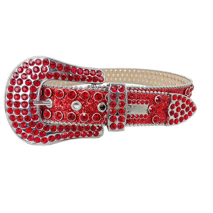 Ultima Cintura Rossa Lucida con Strass per Donne e Uomini Realizzata in Pelle