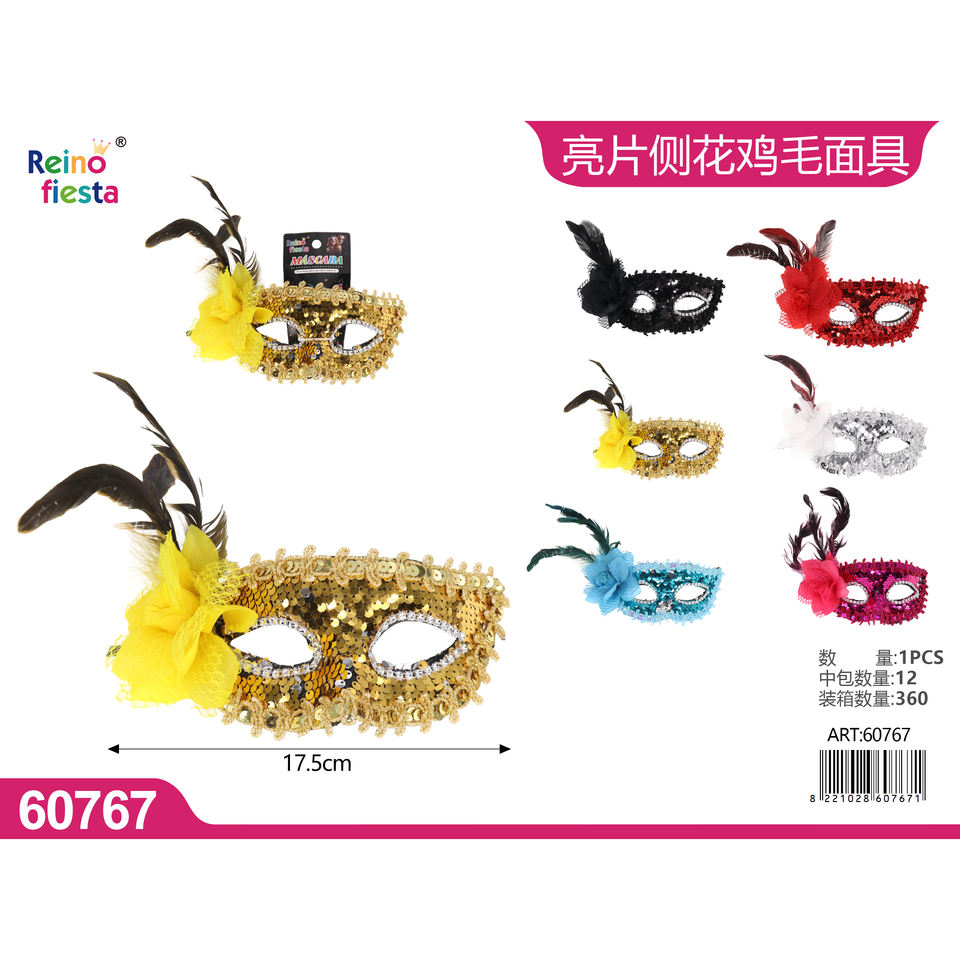 Latex Plastic Half Face Sequin Feather Masquerade Mask Luxury Sexy Side Flower for Dress up at Parties and Events