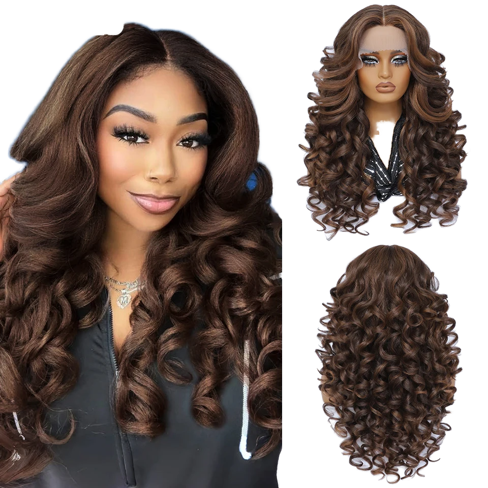 Latisha Lace Front Wigs Synthetic 24 Inch Light Brown Lace Small Cap Afro Wave 180% Density Thick End Cap Afro Women Baby Hair