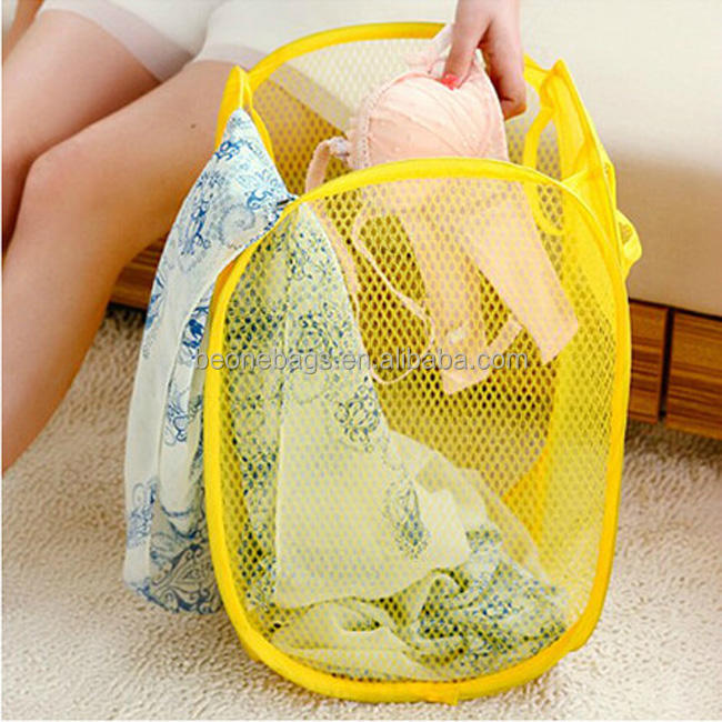 Cesto portabiancheria pieghevole in rete per bucato Pop-up vestiti sporchi sacchetto per biancheria in rete all'ingrosso di lino