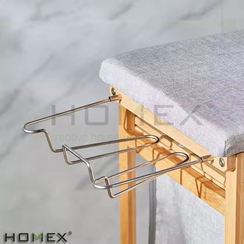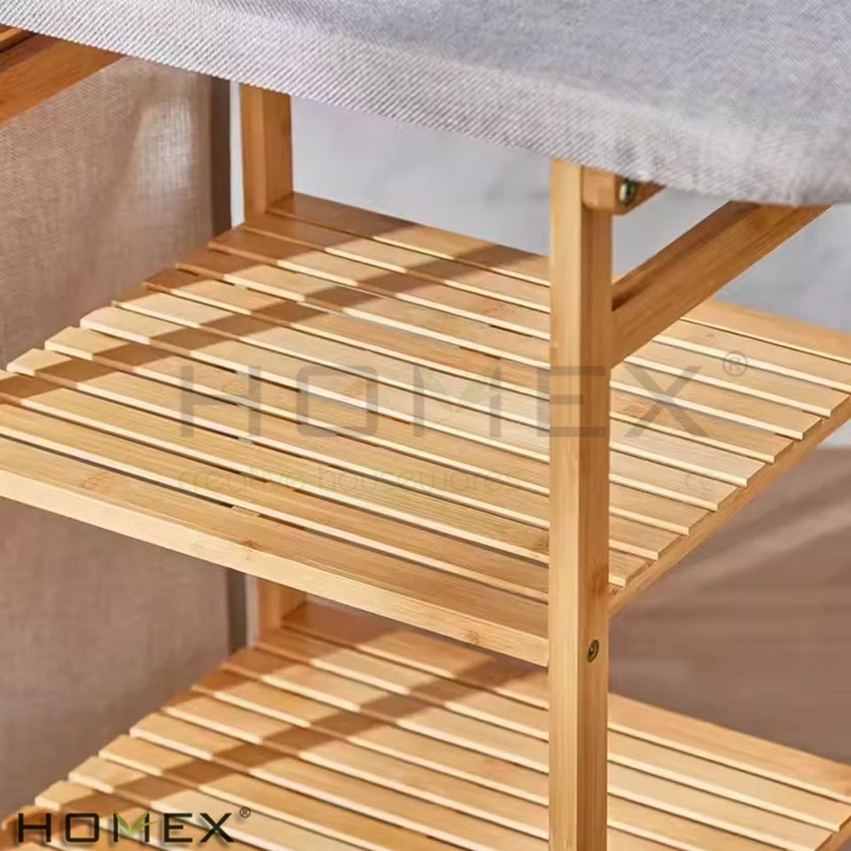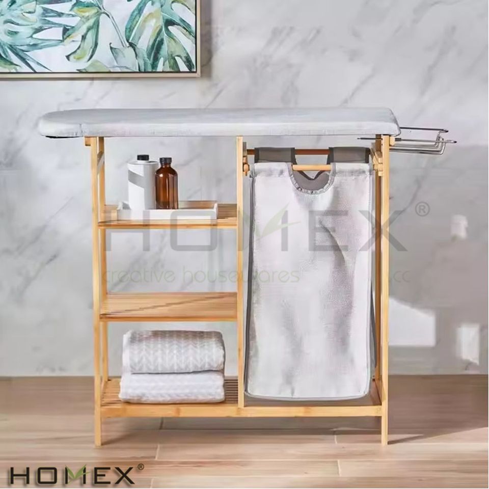 Cesto per biancheria in bambù con ruote e asse da stiro