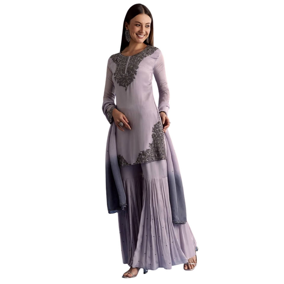 Lavanda Chinon perline Kurta Set con Ombre Dupatta per il commercio all'ingrosso ricevimenti di nozze occasioni Festive feste serali OEM