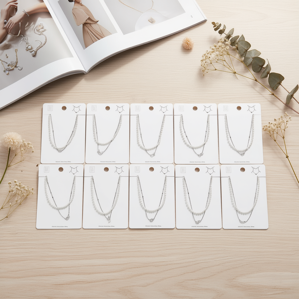 Collana a Doppio Strato in Acciaio Inossidabile con Perle, Ciondolo a Doppia Catena, Gioiello di Moda