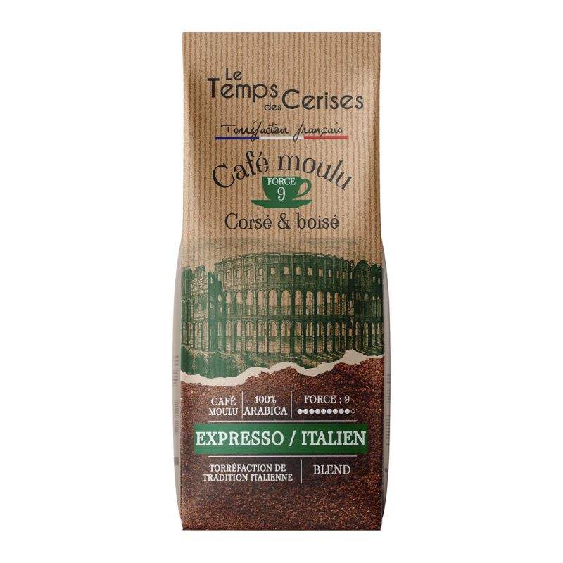 Le Temps des Cerises Caffè Espresso Macinato Italiano 225g (7.9 oz) – Tostatura Francese, Certificato IFS, Caffè Gourmet Premium