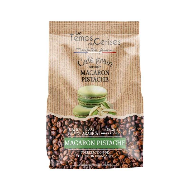 Le Temps Des Cerises Chicchi di Caffè Arabica al Gusto di Macaron al Pistacchio 900g (31.7 Oz) Tostatura Media Certificato IFS Caffè Premium