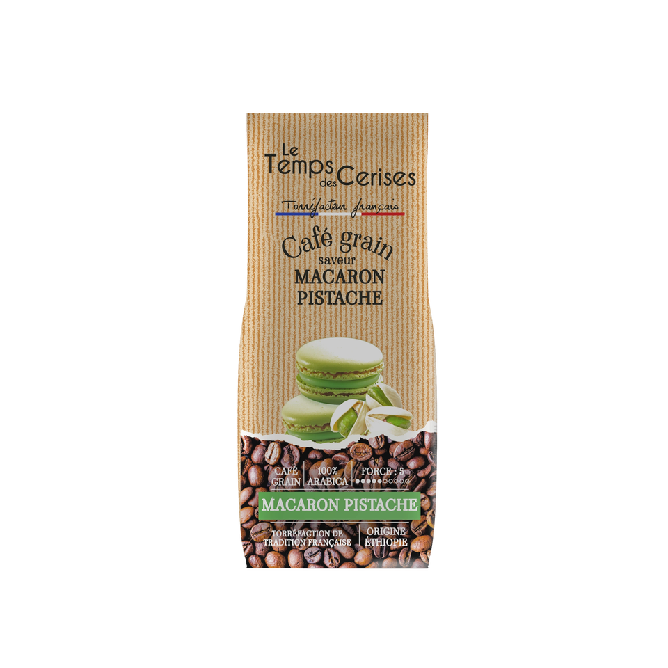 Le Temps Des Cerises Caffè Arabica Pistachio Macaron in Grani 225g (7.9 Oz) Tostatura Media Certificato IFS Caffè Gourmet Premium