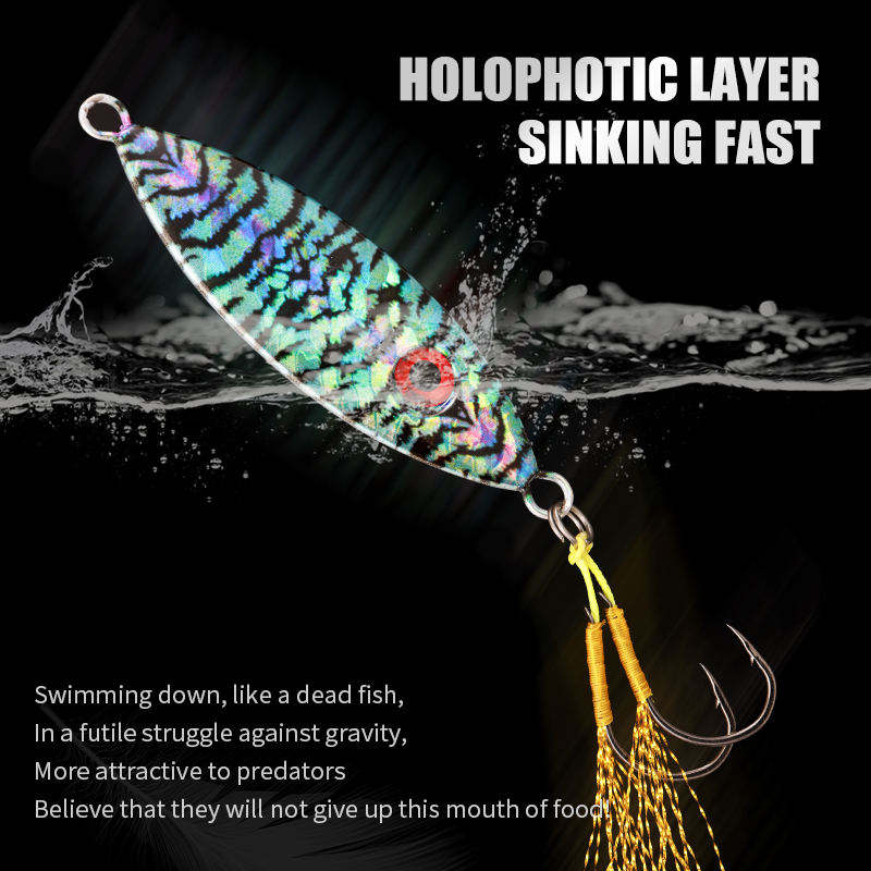 Esca da Pesca a Cucchiaio in Piombo con Stampa 3D per Sgombri, Jig Slow Pitch con Ami Assist, per Acqua Salata, da Barca e da Riva, 50g