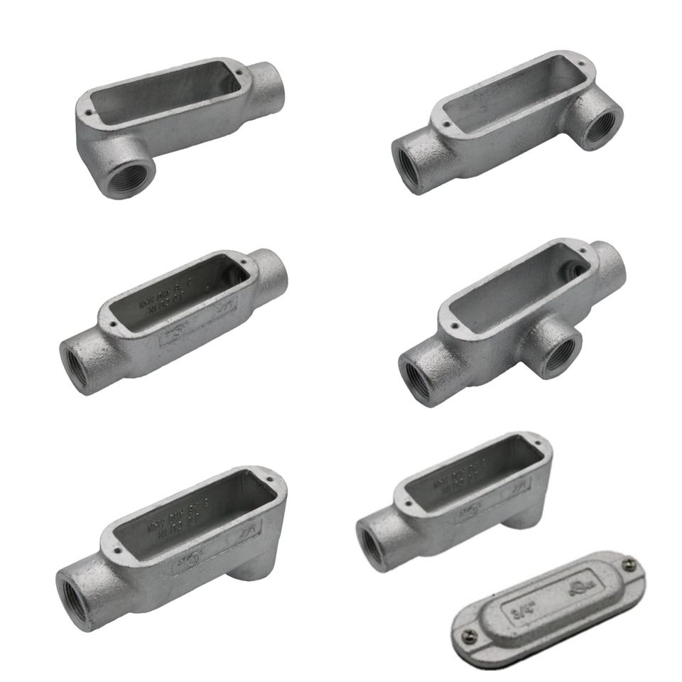 Corpo per condotti LeaderFul LR Tipo Form 7 Modello LR47 1 1/4" in ghisa grigia resistente alla corrosione per tiraggio condotti elettrici