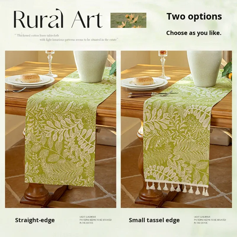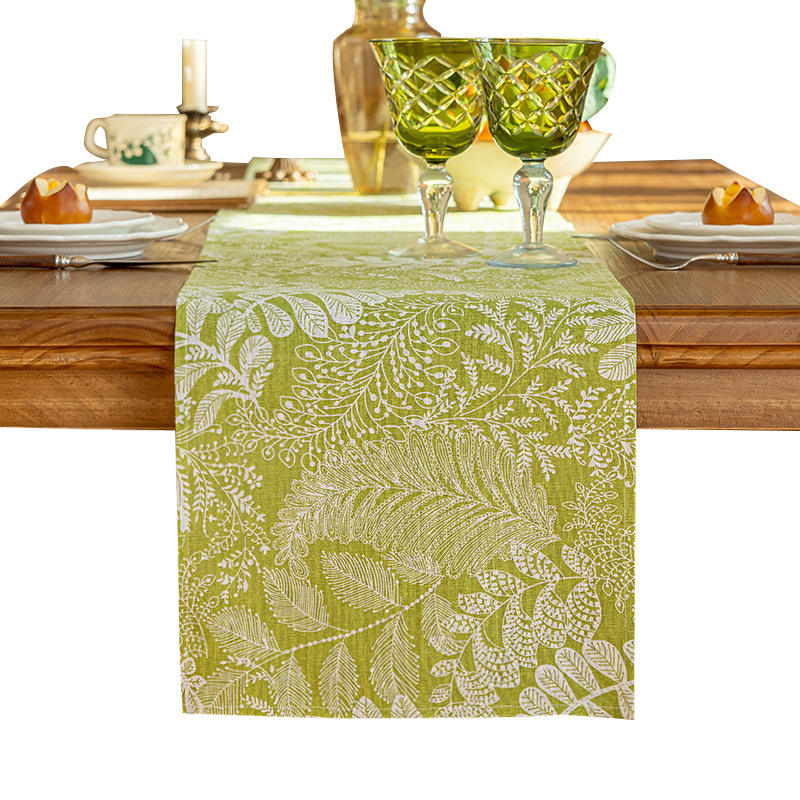 Tovaglia Decorativa in Cotone con Motivo a Foglie, Stile Lussuoso e Raffinato, Forma Allungata