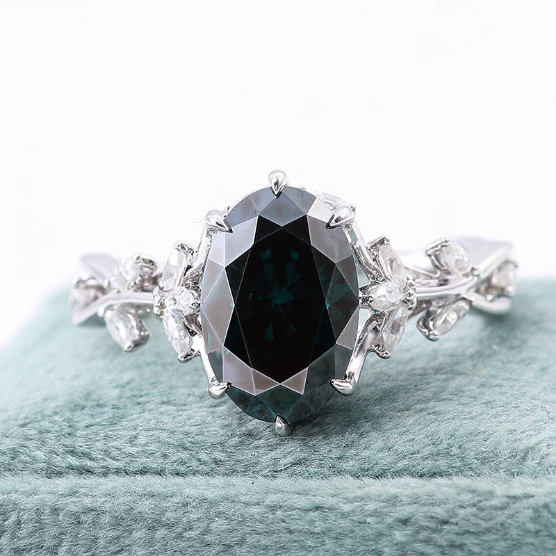 Leaf and Vine Solitaire 13x9mm 8*12mm Oval Green Promise Moissanite Wedding Ring in White Gold