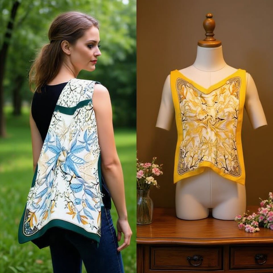 Foulard Quadrato Piccolo a Forma di Foglia 70x70cm 38g, Accessorio Moda Donna con Stampa