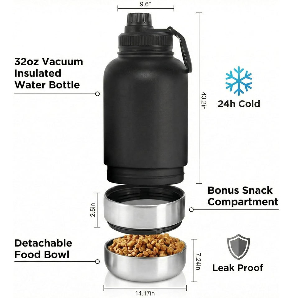 Bottiglia d'Acqua da Viaggio in Acciaio Inox Isolata e Antigoccia da 32oz per Animali e Persone con 2 Ciotole per Cani, Ideale per Escursioni, Campeggio e Viaggi