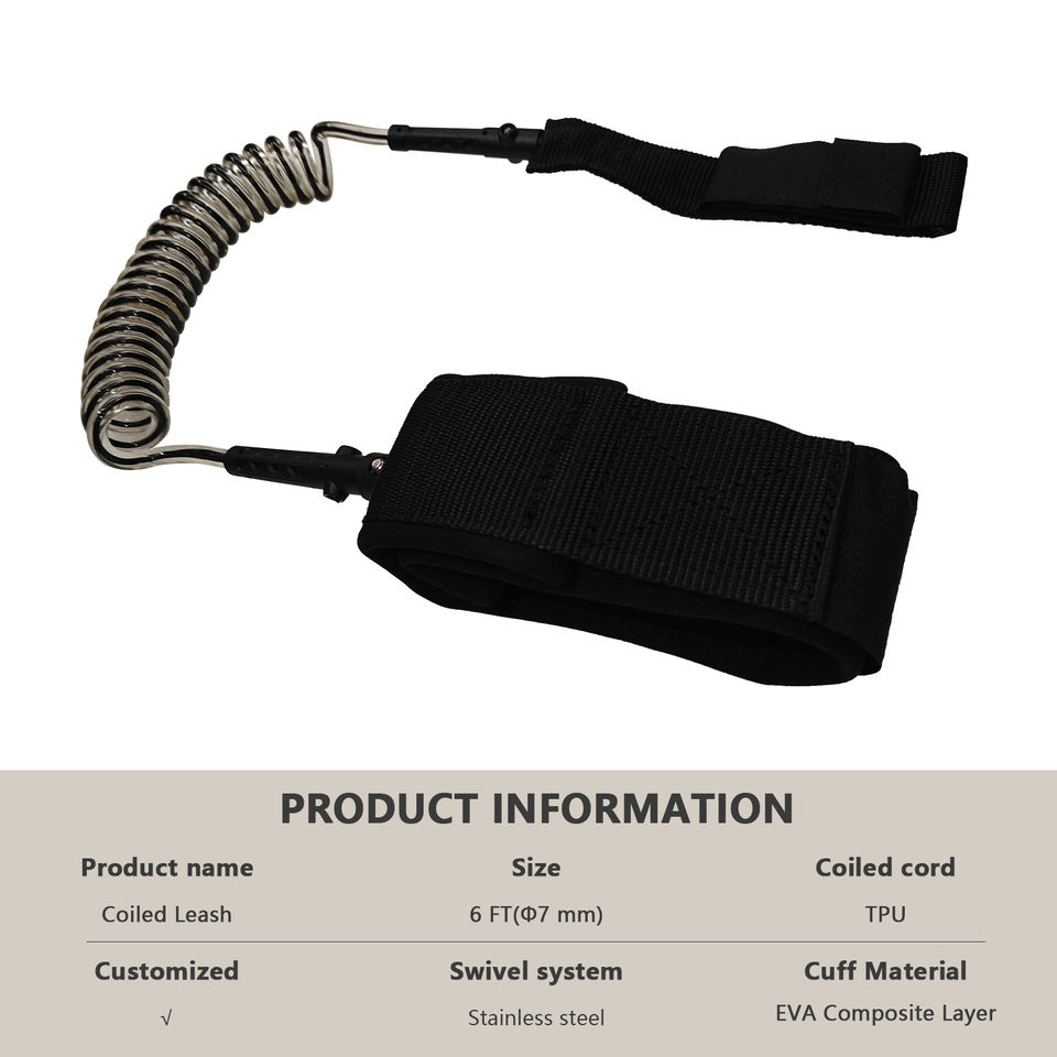 Leash Eva per Tavola da Surf con Connessione Girevole, Leash per Piede, Leash a Spirale per Stand Up Paddle (SUP) e Accessorio per Attività Acquatiche Fluviali