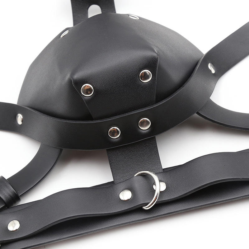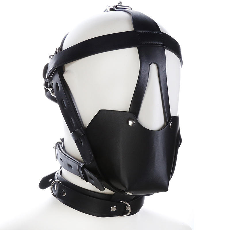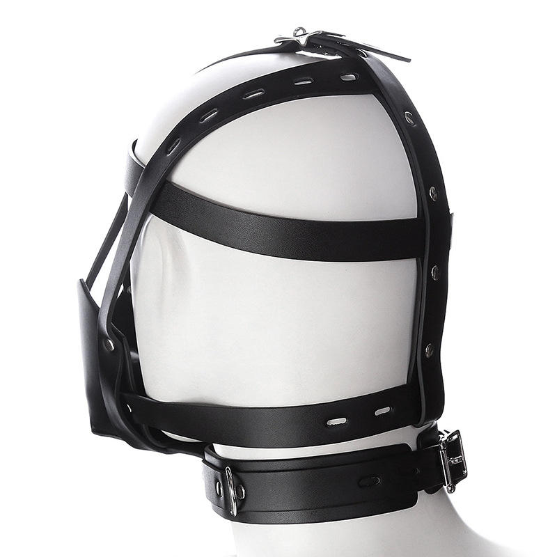 Leather Black Bondage Hood With Mouth Ball for Slave Play