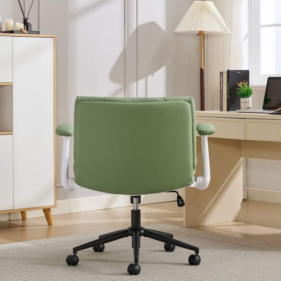 Sedia da Ufficio in Pelle con Gambe Incrociabili, Braccioli Ribaltabili e Ruote Girevoli, Design Confortevole con Seduta Ampia