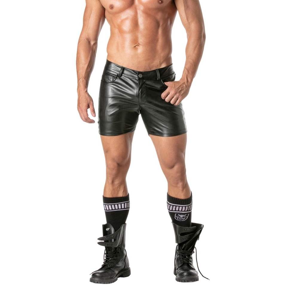 Pantaloncini da uomo in pelle fetish con pizzo, vita elastica, traspiranti, sexy, slim fit, neri e bianchi lucidi, per feste e discoteca