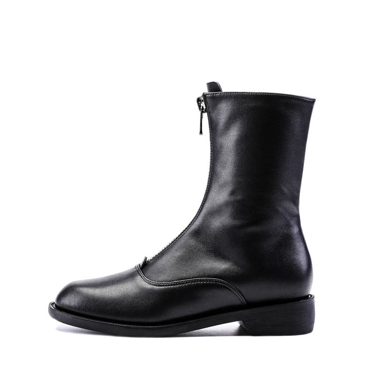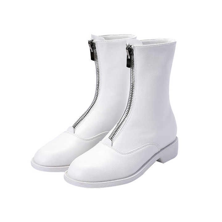 Leather White Fashion Modern Front Zipper Woman Boot with Fur Velvet Lining Winter Women Flat Middle Tube Boots New Arrivals